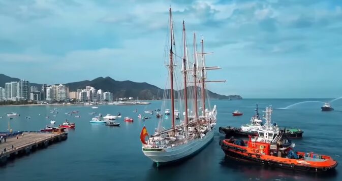 Elcano llegando al Puerto de Santa Marta Colombia - Vídeo - Navegantes de las Américas