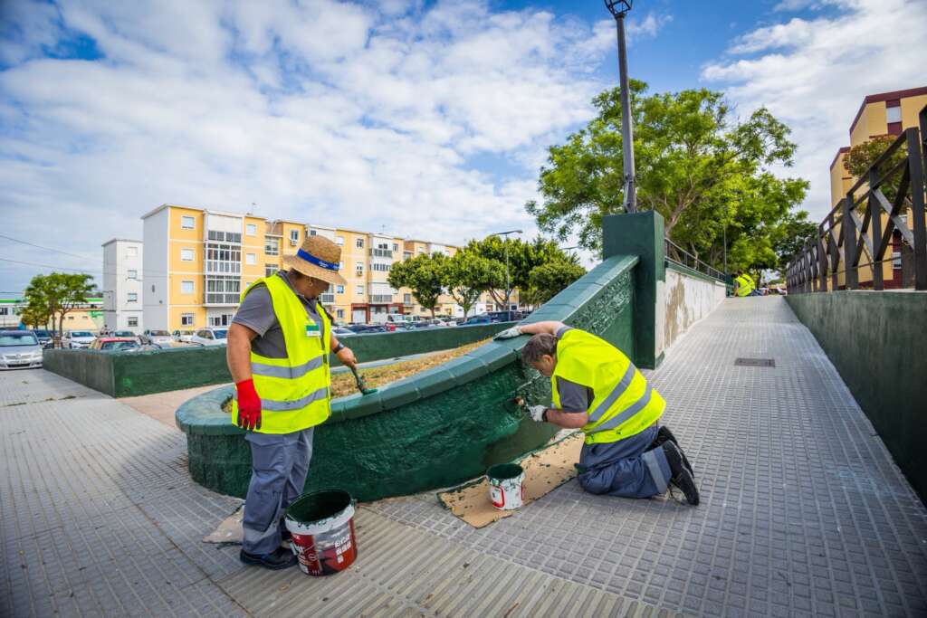 El Ayuntamiento de San Fernando ya tiene en marcha los trabajos del Plan de Mejora Urbana, en el que se han contratado a 68 personas desempleadas mayores de 45 años. Tras diez días de actividad, los operarios están actuando en zonas como Madariaga, Ardila o la Ciudad Deportiva de Bahía Sur, con labores de pintura, resanado y mejora estética de espacios públicos.