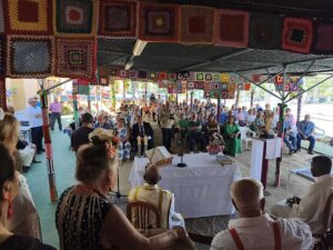 Una mención muy especial se ha dedicado a las mujeres socias que, con enorme entrega y creatividad, confeccionaron a mano las aplicaciones de ganchillo que decoraron la cruz y el entorno. Gracias a su labor, las instalaciones de la asociación brillaron con un aspecto espectacular, lleno de color, tradición y calidez.