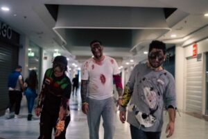 Con todas las tiendas cerradas y el centro ambientado para la ocasión, los jugadores se enfrentaron a un juego de rol en vivo que recreaba una invasión zombie en pleno corazón del centro comercial isleño. El reto era claro: sobrevivir el mayor tiempo posible esquivando a los muertos vivientes que acechaban cada rincón.