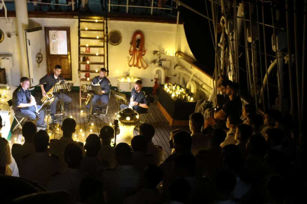 Música a la luz de las velas desde el alcázar del buque escuela Juan Sebastián de Elcano
