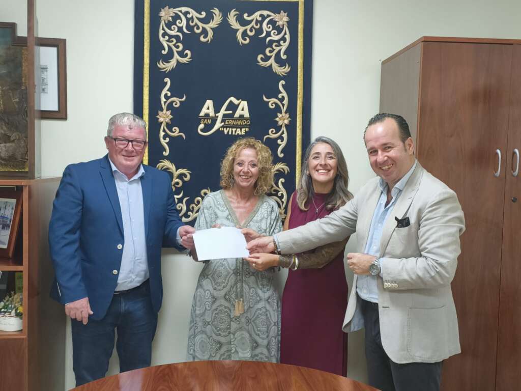 El presidente de la Asociación Isleña de Hostelería y Turismo (Asihtur), Juan López, y el vicepresidente de la misma, Antonio Alba, han hecho entrega a la Asociación de Familiares de Enfermos de Alzheimer (AFA Vitae) los fondos recaudados a través de la venta del CD solidario 'Madre', que la Capilla Musical Lignum Crucis elaboró en colaboración con Asihtur y en la que esta agrupación musical interpreta diversas piezas musicales dedicadas a hermandades de San Fernando que son obra de 18 compositores isleños.