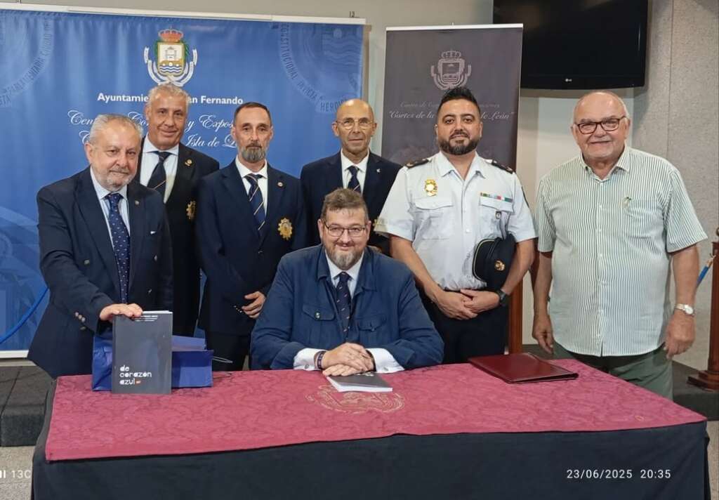 El pasado lunes 23 de junio a partir de las siete de la tarde se presentó en La Isla de la cual es originario el autor el libro “de corazón azul” que está dedicado a la bicentenaria Policía Nacional. Y se hizo con una mesa con intervinientes de lujo. Presidió el acto la tercera teniente de alcaldesa y concejal delegada de Seguridad Ciudadana y Protección Civil, María José Foncubierta, a su lado Jesús Rodríguez Arias, autor de la obra literaria, Luis Rodríguez Rodríguez, comisario y escritor que ostentó la jefatura de la Comisaría de San Fernando de 2015-2018 que fue el encargado de la presentación. Así mismo Ángel Revaliente Domínguez, ilustre periodista jerezano y prologuista, Pablo Ruano Moreno, autor de epílogo, policía incardinado en la Comisaría de La Línea de la Concepción desempeñando sus funciones en la Policía Científica. Ruano Moreno acudió al acto revestido con el uniforme de Policía Nacional toda vez que representaba expresamente al Cuerpo en este acto literario.