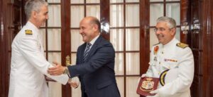 En la recepción, el representante de la administración provincial ha entregado a los dos capitanes de navío una placa conmemorativa, como recuerdo del momento. Además, Esteban y Pazos han estampado su rúbrica en el Libro de Honor de la Diputación.