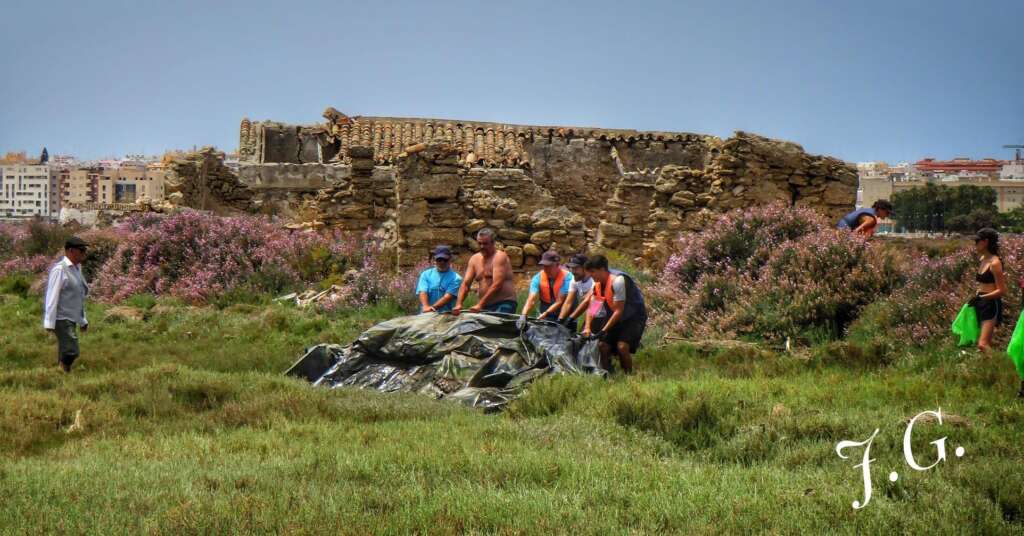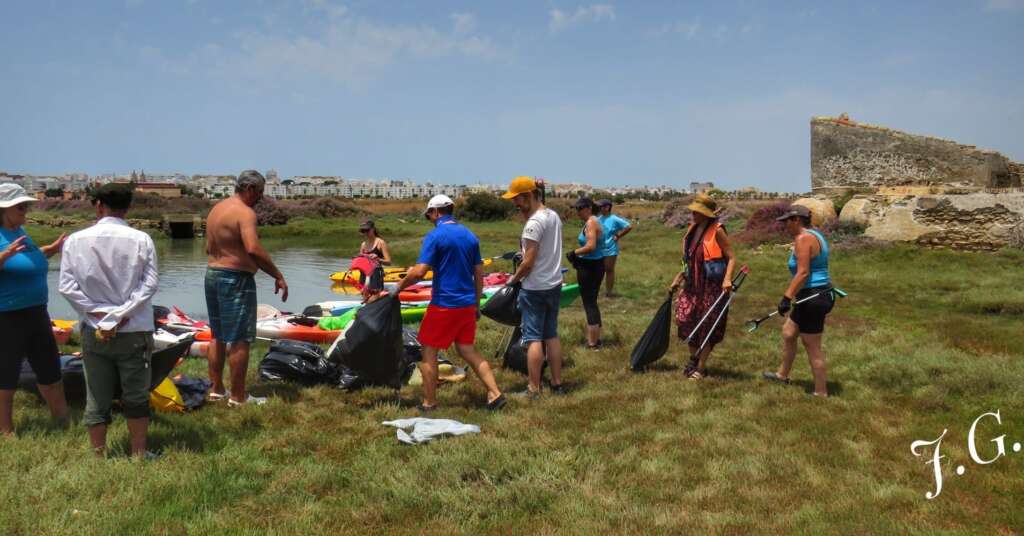 Con la colaboración de un barco de apoyo, 20 voluntarios, dos monitores y dos fotógrafos, todos equipados con guantes, bolsas, seguros y el material necesario, los participantes recorrieron el entorno natural en dirección al caño del Zurraque, cerca del caño de Sancti Petri. Allí procedieron a retirar los residuos acumulados en la zona.
