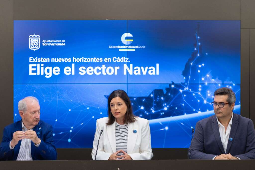 En una rueda de prensa ofrecida junto al presidente del Clúster Marítimo Naval de Cádiz, José Luis García-Zaragoza, y el director del IES Las Salinas, Joaquín Rodríguez, la alcaldesa, Patricia Cavada, ha subrayado que la industria naval es un motor económico y tecnológico que ofrece oportunidades de empleo estable y cualificado, especialmente para la juventud.