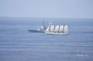 El buque escuela Juan Sebastián de Elcano y la fragata Blas de Lezo zarparon este lunes 7 de julio desde Gijón rumbo a Ferrol, dejando una estampa imponente a su paso por la costa norte.