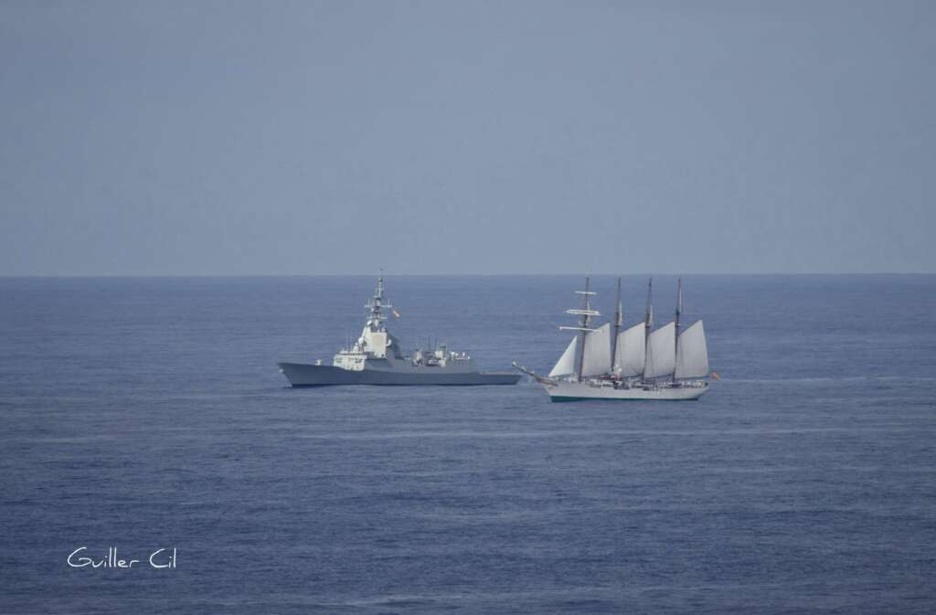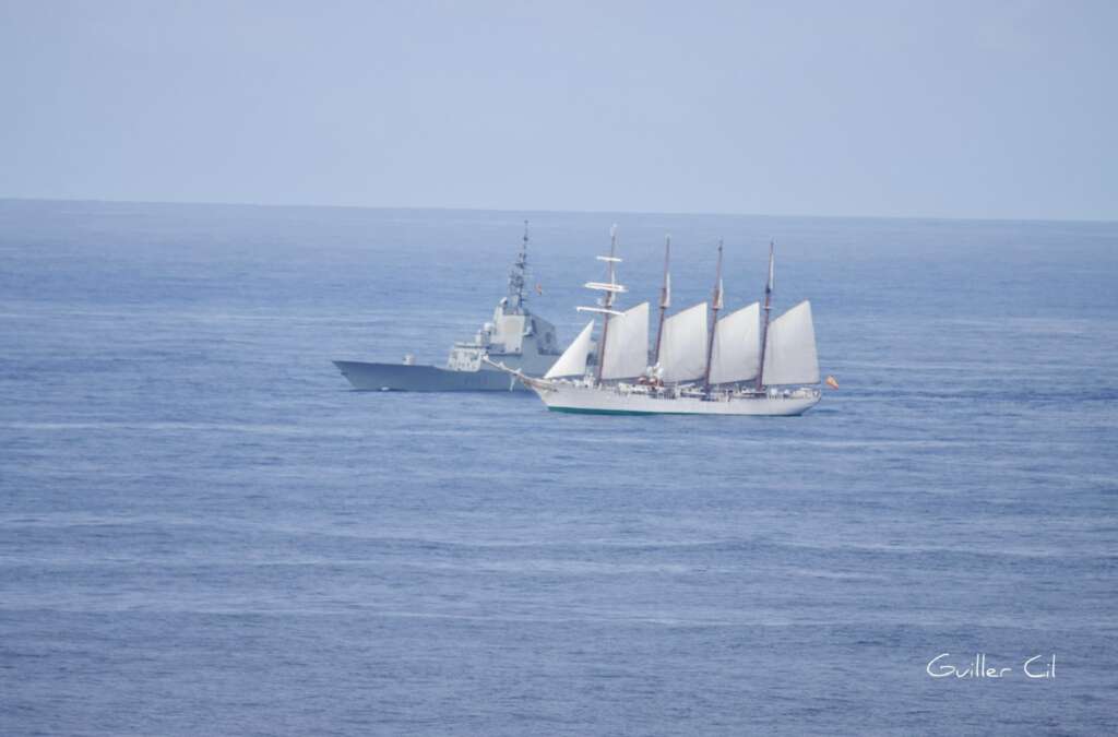 Llegada la tarde ambas unidades de la Armada Española pudieron verse desde distintos puntos entre Gijón y Luarca, atrayendo la atención de curiosos y entusiastas del mundo naval.