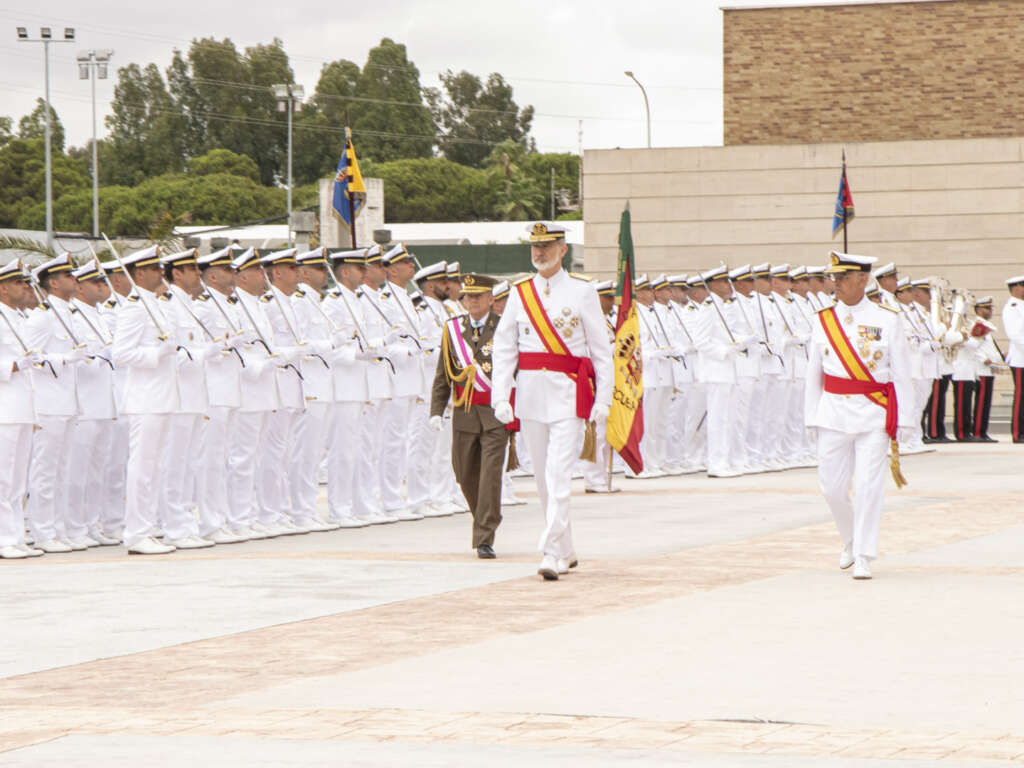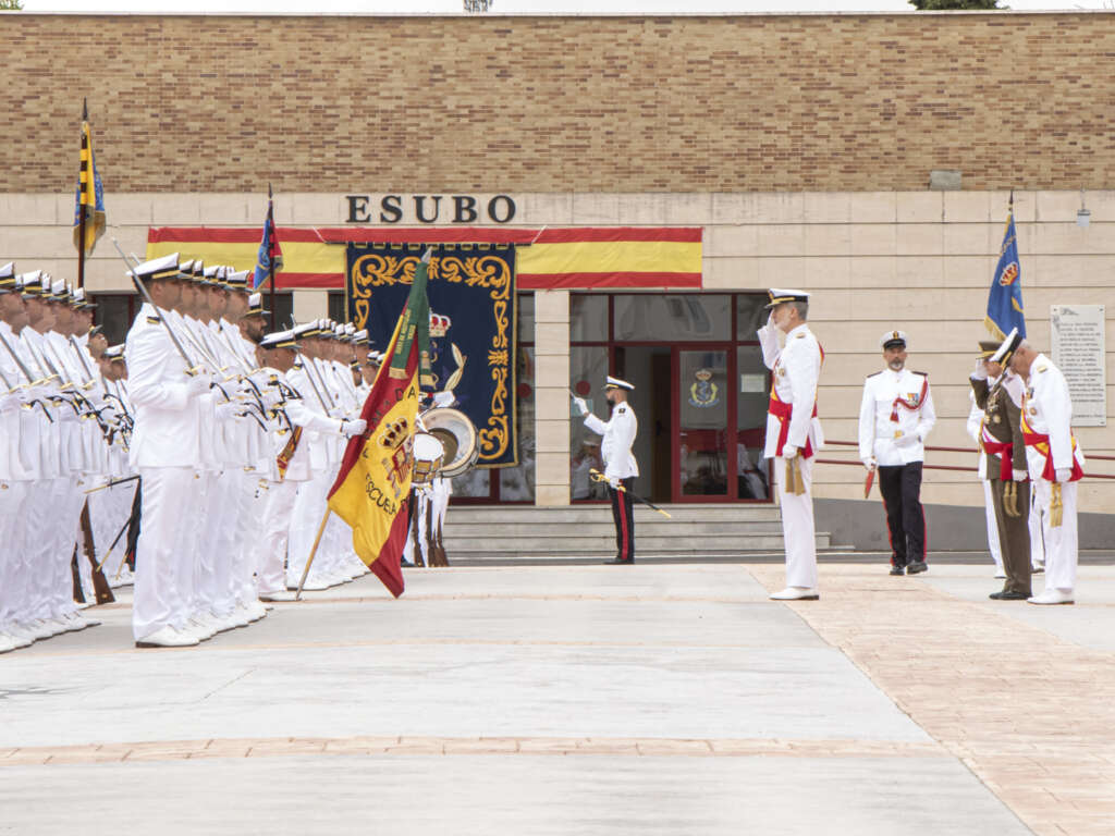 El acto, que se celebró en el patio de armas de la Escuela de Suboficiales (Esubo), fue presidido por Su Majestad el Rey Felipe VI, acompañado del Almirante Jefe de Estado Mayor de la Armada (AJEMA), Jefe del Cuarto Militar de Su Majestad el Rey, Oficiales Generales de la Bahía de Cádiz y las principales Autoridades civiles y militares de la provincia de Cádiz.