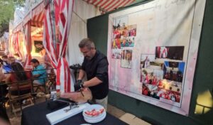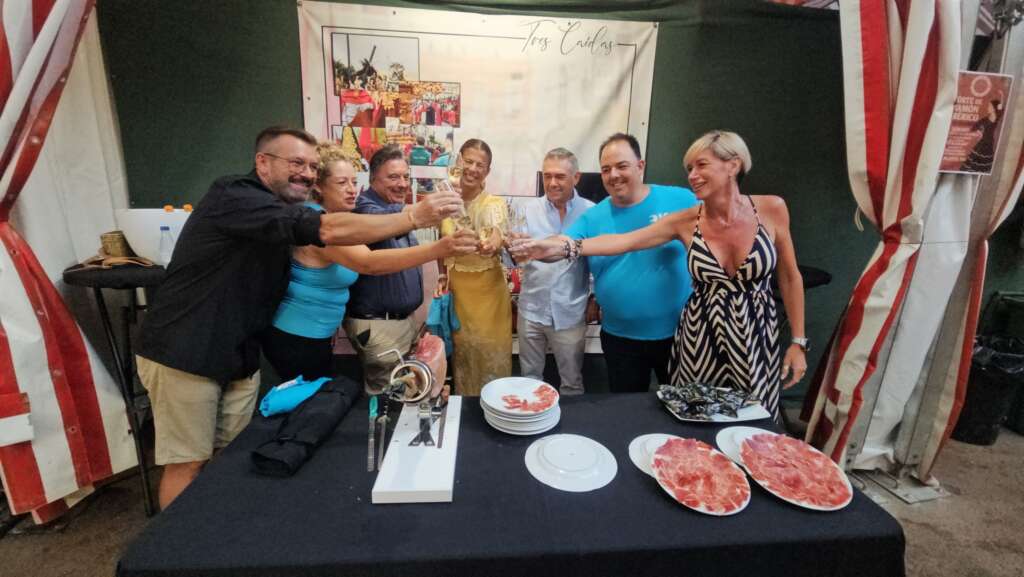 La caseta 'El Batakaso' en la Feria del Carmen y de la Sal 2025 acogió la cuarta edición del Corte Solidario de Jamón, organizado por la Hermandad de Tres Caídas, con una recaudación histórica de 420 euros a beneficio de Cáritas Parroquial de la Sagrada Familia.