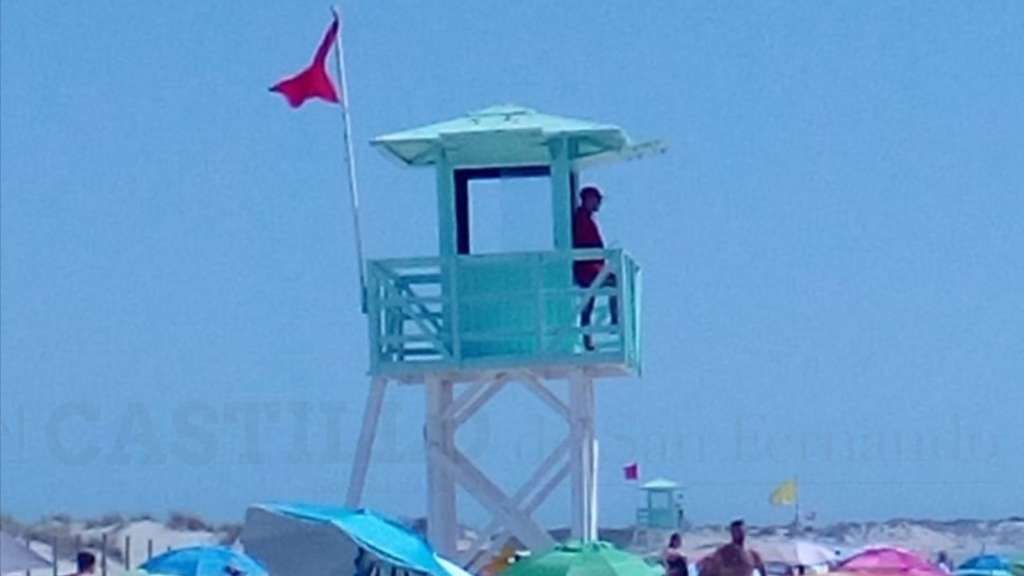 Bandera roja en la playa de Camposoto por fuerte oleaje y corrientes