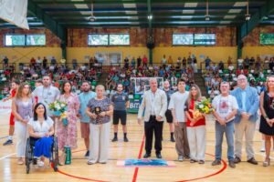 El momento más emotivo se vivió cuando la madre del jugador, Paqui, recibió junto a la familia un reconocimiento a la pasión y entrega que Miguel Ángel demostró dentro y fuera de la pista. La alcaldesa Patricia Cavada y el concejal de Deportes Antonio Rojas participaron en el acto institucional, destacando la figura de un isleño que compaginó la vocación de servicio público en la Guardia Civil con su amor por el balonmano.