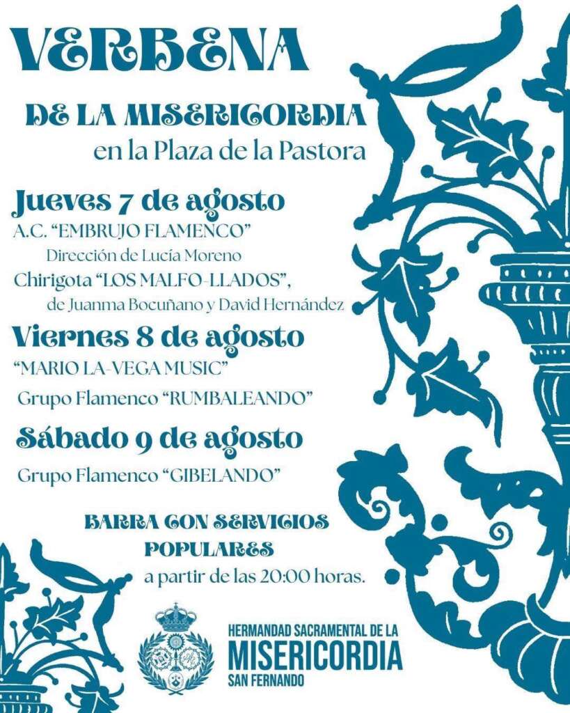 La Hermandad Sacramental de la Misericordia de San Fernando anuncia una nueva edición de su esperada verbena que se celebrará los días 7, 8 y 9 de agosto en la Plaza de la Pastora, combinando tradición, diversión y solidaridad en un ambiente familiar y cercano.