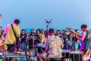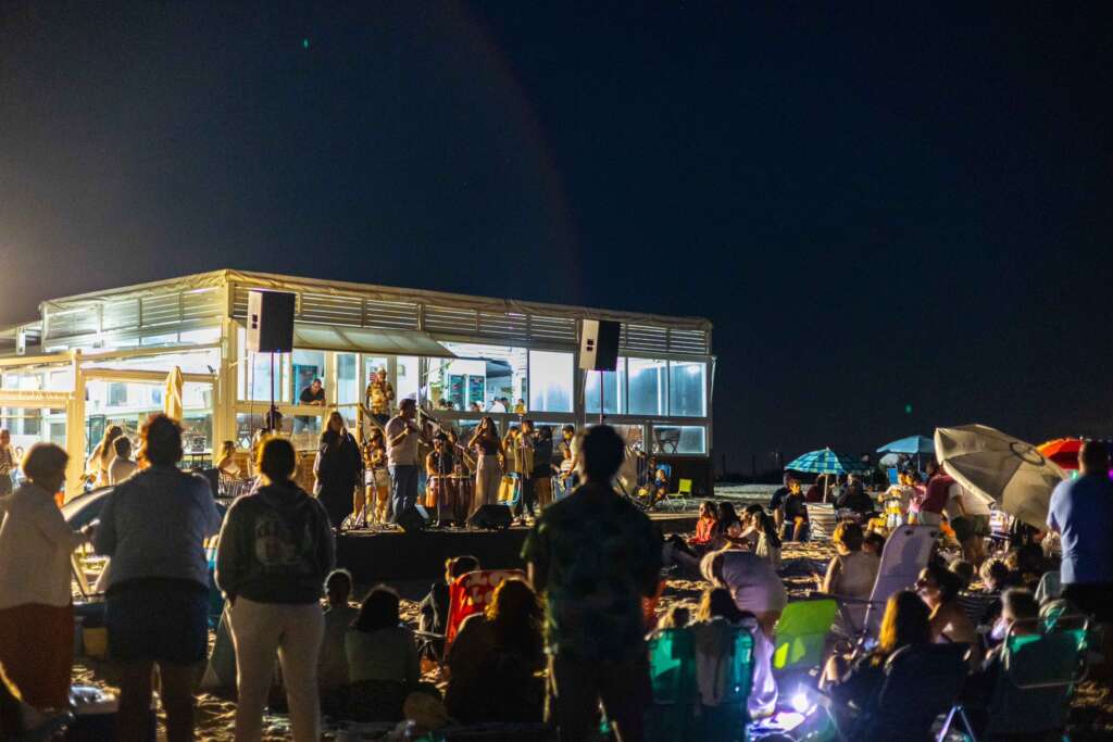 A partir de las 20:30 horas, la música se convirtió en protagonista con los conciertos de Rumbaleando, Iván Torrán, Phango Dub, Los Hombres de Papel y Kadipó, repartidos en distintos escenarios de la playa y chiringuitos con música en directo.