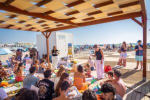 El buen clima acompañó a los asistentes durante toda la jornada, y no faltaron sombrillas, neveras y sillas para disfrutar cómodamente de la playa. Muchas familias y grupos pasaron el día completo tomando el sol, jugando en la arena y participando en las actividades, mientras que otros llegaron al atardecer para disfrutar de los conciertos. Al caer la noche, la música animó a todos, y no eran pocos los que bailaban descalzos sobre la arena. Además, algunos valientes se bañaron entre canción y canción, disfrutando de un agua y "chapuzón espectacular" bajo el cielo oscuro de la llamada Luna Negra del 23 de agosto, que coincidió con la recta final de las Perseidas, creando una atmósfera mágica y única durante todo el festival.