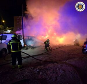 El fuego se originó pasadas las 22:45 horas, cuando vecinos alertaron sobre llamas que se propagaban rápidamente y un intenso olor a quemado. Efectivos de la Policía Local, Policía Nacional y bomberos se desplazaron de inmediato al lugar para controlar la situación y evitar que las llamas se extendieran a áreas colindantes.