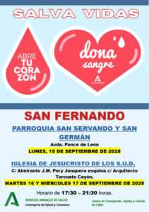 La Red Andaluza de Medicina Transfusional, Tejidos y Células de la Consejería de Salud y Familias una vez más hace un llamamiento urgente a los isleños para acudan a donar sangre y plasma con el fin de garantizar para cubrir las necesidades de los centros sanitarios de San Fernando.