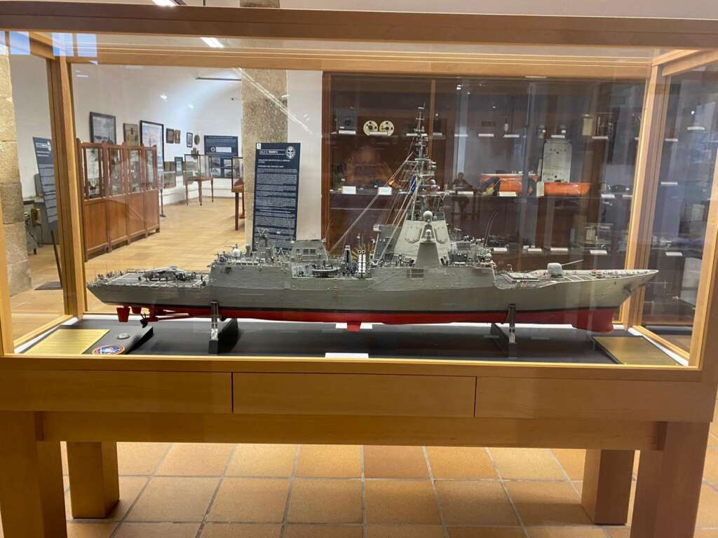 José Romero de Ávila Tránchez, natural de Albacete, es un artista consagrado como maquetista y modelista de buques, trabajos que realiza desde que era niño. Su amor por la Armada le ha llevado a diseñar y construir esta magnífica obra que ahora se expone, la fragata F-105 “Cristóbal Colón”, que representa fielmente la más moderna de las fragatas de la serie F-100, construidas sus cinco unidades en Ferrol. Su autor recrea el buque en un momento histórico concreto, después de los ejercicios de tiro “Formidable Shield” de 2021, con una precisión espectacular en todos los detalles y características del barco. Se trata de un modelo a escala 1:72 de gran realismo, que mide 2,03 metros de eslora (largo) y 28 de manga (ancho), habiendo invertido nada menos que siete años en su construcción.