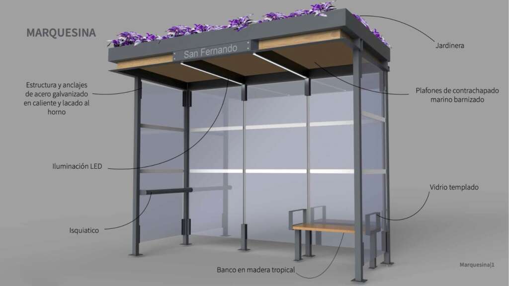 Siguiendo el ejemplo de otros ayuntamientos europeos, San Fernando se sitúa a la vanguardia con la instalación de marquesinas innovadoras provistas de miniecosistemas: pequeños jardines ubicados en las cubiertas que, entre otros beneficios, absorberán emisiones de CO₂, reducirán la contaminación acústica, aprovecharán el agua de lluvia y contribuirán a mitigar el efecto de isla de calor, en un contexto de emergencia climática.