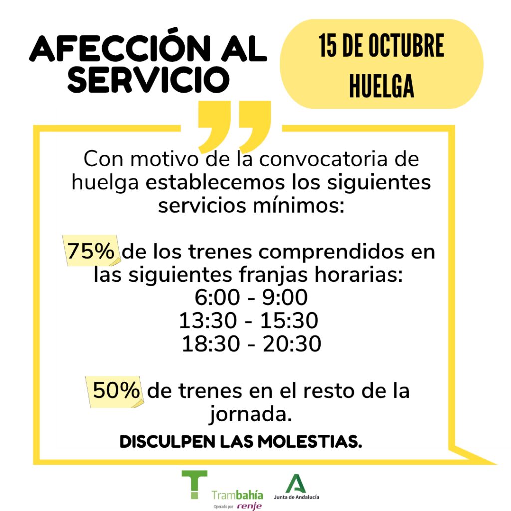 Con motivo de la convocatoria de huelga, Trambahía ha establecido los servicios mínimos que se aplicarán durante la jornada.