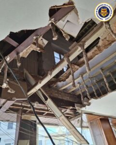 A su llegada, junto a técnicos de urbanismo del Ayuntamiento de San Fernando, comprobaron que, además de los ladrillos, se habían caído cuatro vigas, el relleno del techo y el suelo de la planta superior, dejando la finca al descubierto. La propiedad ha sido clausurada oficialmente y acordonada por seguridad hasta que se reparen los daños.