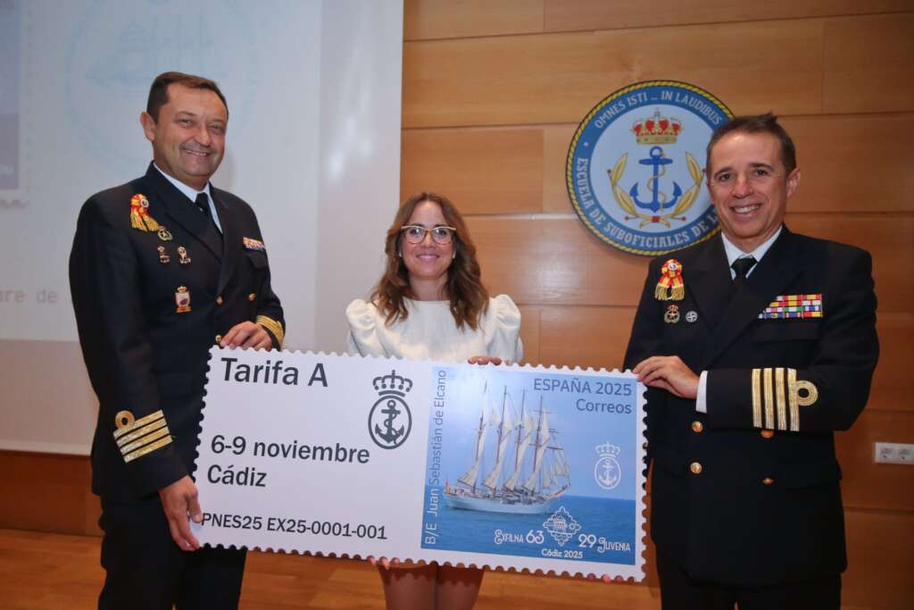 El acto contó con la presencia del director de la Escuela de Suboficiales, capitán de navío David Durán Mayoral; el comandante del Juan Sebastián de Elcano, capitán de navío José María de la Puente Mora-Figueroa; y la directora de Filatelia y Relaciones Institucionales de Correos, Nuria Lera Hervás.
