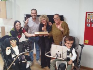 Durante el acto de entrega, el alumnado recibió al equipo del Grupo Por con gran cariño. Mercedes Giraldo y Visi Caballero mostraron cómo este dispositivo puede transformar la vida de quienes lo utilizan, abriendo nuevas oportunidades de comunicación y autonomía.