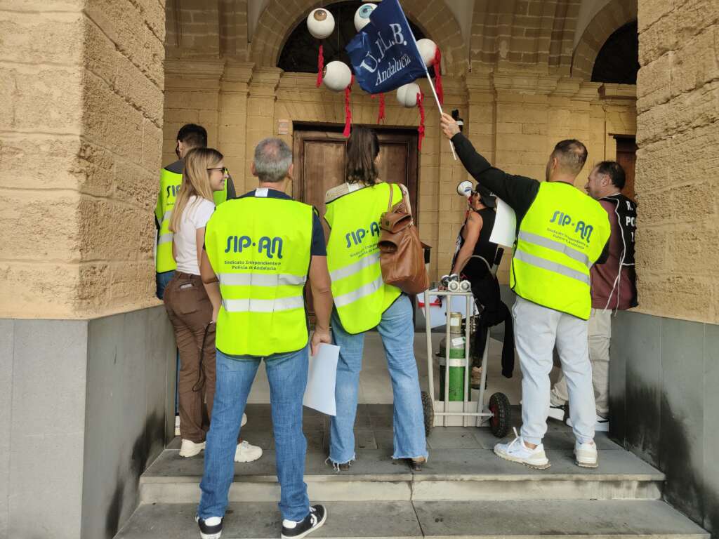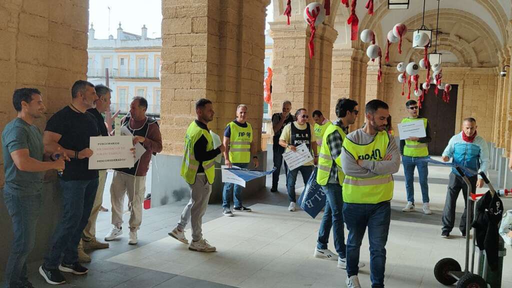 Agentes de la Policía Local de San Fernando manifestándose ante el consistorio isleño - El Castillo de San Fernando