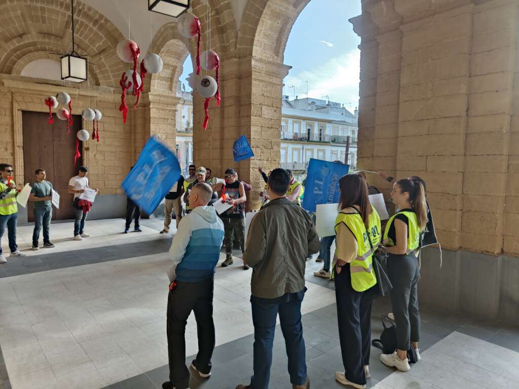 Decenas de empleados del Ayuntamiento de San Fernando se dieron cita este viernes 31 de octubre frente al consistorio para exigir mejoras laborales tras años de retrasos en la valoración de puestos de trabajo