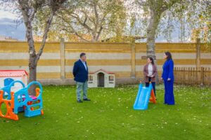 La nueva zona infantil, con césped, pavimento amortiguador y cerramiento perimetral, ofrece un entorno seguro y adecuado para las actividades del alumnado más pequeño. Además, se ha mejorado el porche del edificio de Infantil, delimitándolo con elementos de seguridad que permiten que los niños y niñas puedan salir al aire libre incluso en días de lluvia, permaneciendo resguardados.