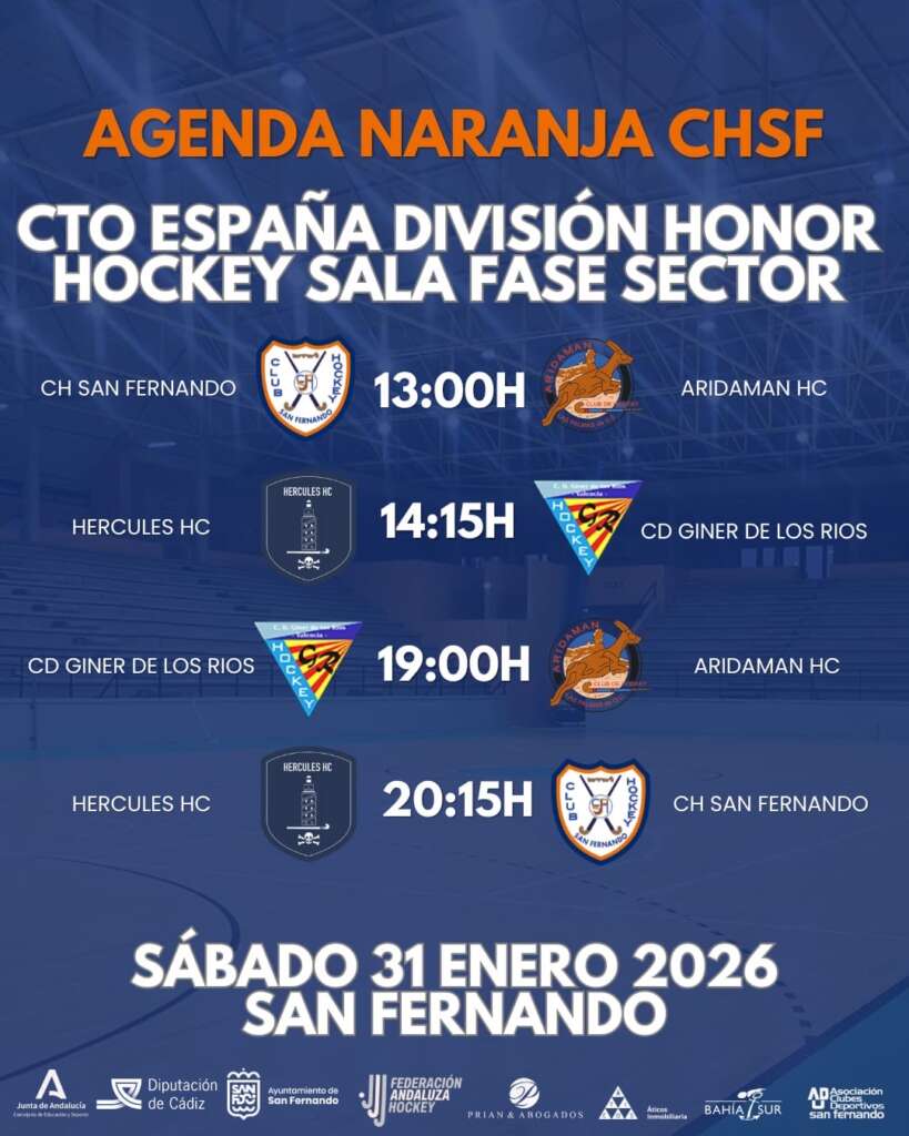 El Club de Hockey San Fernando, bajo la dirección del técnico Adrián Fernández, participará en esta fase con la siguiente convocatoria: Miriam Montiel, Paula Alonso, Candela Anelo, Ainhoa de Gomar, Helena González, Lucía Torrejón, Ana Torrejón, Marina Ruiz, Candela Aleu y Vale. El debut del CHSF será el sábado 31 de enero a las 13:o0 horas.
