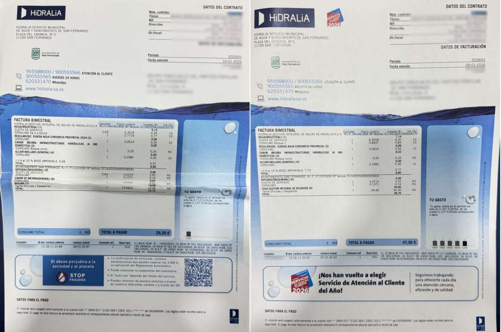 El recibo del agua en San Fernando ha subido casi un 63 por ciento el último año