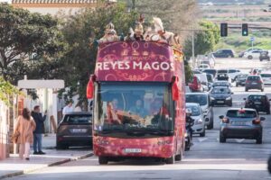 SSMM los Reyes Magos inician su recorrido por los barrios de La Isla en su Autobús Real descapotable