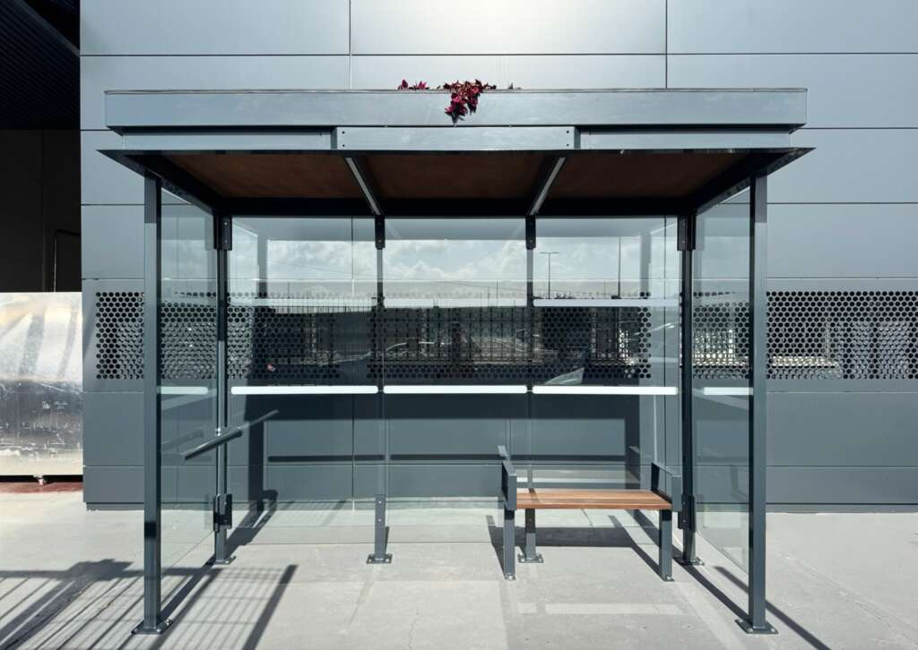 Las marquesinas, que están fabricadas en una estructura de acero galvanizado en caliente y lacado al horno, contarán con guardavientos laterales de cristal, iluminación LED de bajo consumo y un asiento de madera tipo banco, complementado con un apoyo isquiático que facilita el descanso de personas con dificultades para sentarse en un asiento convencional.