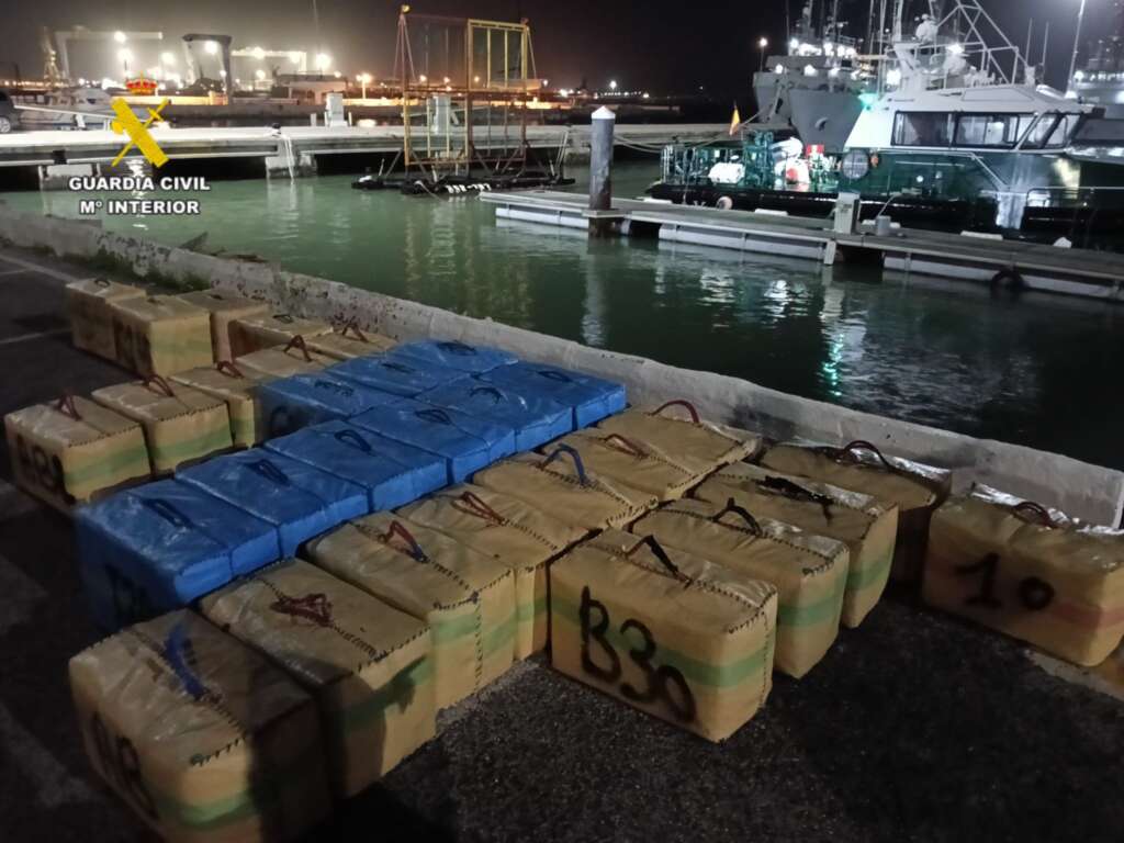 En la embarcación fueron intervenidos un total de 30 fardos de hachís, con un peso aproximado de 1.050 kilogramos. La droga y los detenidos quedaron a disposición de la autoridad judicial competente.