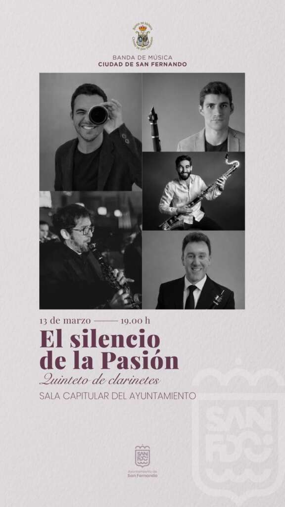 La Sala Capitular del Ayuntamiento de San Fernando acogerá el próximo viernes 13 de marzo de 2026, a las 19:00 horas, el concierto de Cuaresma 'El Silencio de la Pasión', una propuesta organizada por el Ayuntamiento de San Fernando y la Banda de Música ‘Ciudad de San Fernando’ que ofrece un recorrido musical entre la tradición sacra y la música procesional.
