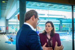 La alcaldesa de San Fernando, Patricia Cavada, y el CEO de Redexis, Fidel López, han mantenido un encuentro para conocer de primera mano los resultados de la puesta en servicio del suministro de gas natural en la piscina climatizada de la Ciudad Deportiva Bahía Sur, una actuación que supone un importante avance en la modernización energética de las instalaciones deportivas municipales.