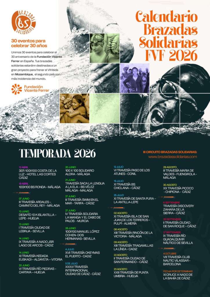 Esta cita forma parte del calendario 2026 de Brazadas Solidarias, que incluye 30 eventos para celebrar el 30 aniversario de la Fundación Vicente Ferrer en España, y que se ha dado a conocer a través de las redes oficiales de Brazadas Solidarias este viernes 27 de marzo. Todas las brazadas de esta temporada estarán destinadas a impulsar un proyecto para frenar el VIH/Sida en Mozambique, el segundo país con mayor incidencia del mundo, llevando por primera vez la solidaridad de los nadadores españoles al continente africano.