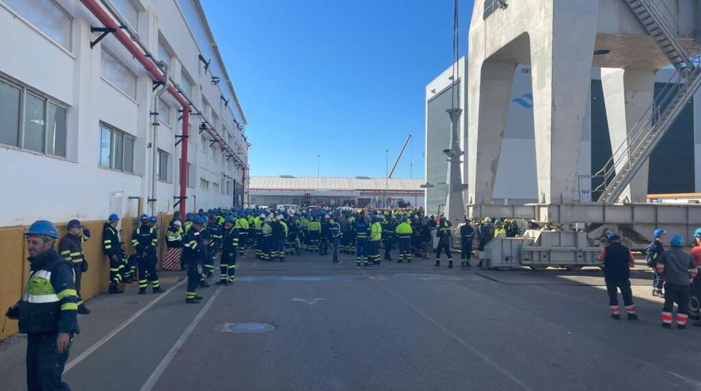 Nuevos paros en Navantia San Fernando en apoyo a dos trabajadores incomunicados en una grúa
