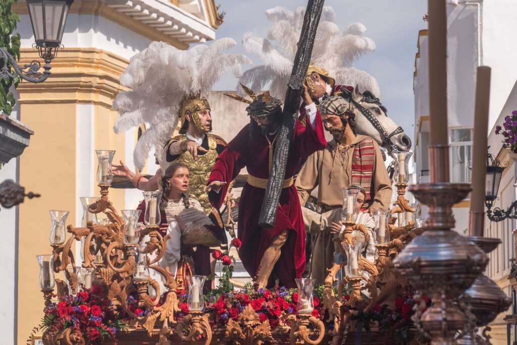 La tarde comenzó a las 14:30 horas en el barrio de la Bazán. La Hermandad de las Tres Caídas realizó su salida desde la Parroquia de la Sagrada Familia. Con casi 600 hermanos, el misterio sorprendió con el estreno de la imagen del ladrón Gestas y el tallado de los respiraderos. El caminar del Señor, obra de Jesús Vidal González, fue mecido por la Agrupación Musical Lágrimas de Dolores hasta su recogida a las 23:45 horas. Este año fue de nuevo especial destacado su paso por la Venta de Vargas, donde varios saeteros y el Coro de La Isla acompañaron con sus voces el caminar del Cristo de las Tres Caídas por este emblemático lugar.