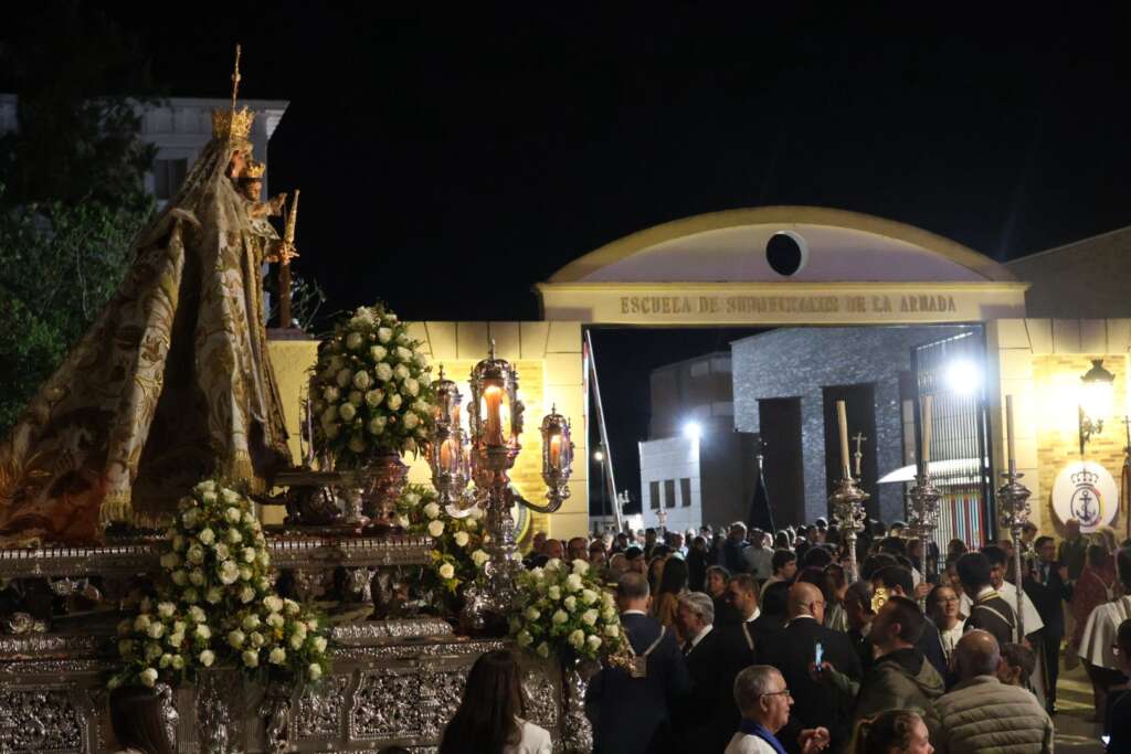 A su llegada a la zona militar la Virgen marinera, Patrona de La Isla, lució sus mejores galas al compás de sones militares interpretados por la Banda de Música Maestro Agripino Lozano. El paso accedió a la Escuela de Suboficiales (Esubo) alrededor de las 22:30 horas y, posteriormente, en torno a las 23:00 horas, realizó su entrada en la capilla del Panteón de Marinos Ilustres, culminando así una jornada de gran carga simbólica, marcada por el orden del cortejo y la notable respuesta del público a lo largo de todo el recorrido.