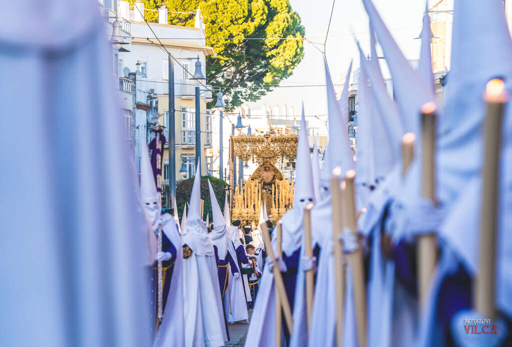 El Paso del Señor caminó con los sones de la Agrupación Musical Ecce Mater de Cádiz y la Agrupación Musical Santísimo Cristo de la Clemencia de Jerez de la Frontera. Por su parte, el Paso de Palio de la Virgen del Amor fue acompañado por la Banda de Música de la Hermandad del Nazareno de San Fernando. Una cofradía que, sin presentar estrenos este año, llenó de fervor cada rincón de su itinerario.