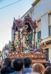 Recorrido: Iglesia Mayor Parroquial, Plaza de la Iglesia, Real, Carrera Oficial, Isaac Peral, Calderón de la Barca, Cayetano del Toro, General García de la Herrán, Rosario, Colón, Churruca, Maestro Portela, Manuel Roldán, Colón, Cardenal Spínola, Diego de Alvear, Real, Plaza de la Iglesia y a su templo.